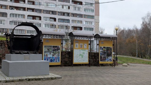 Необычный памятник встречает гостей музея истории и культуры города. Ковш первого экскаватора, который помогал первостроителям города.